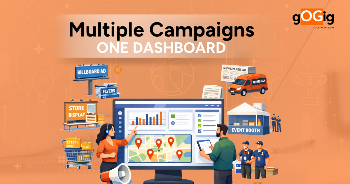 gOGig functions as a project management system for field execution, a centralized reporting platform, and a real time verification engine. Automation strengthens operational transparency and ensures measurable oversight across all active campaigns.